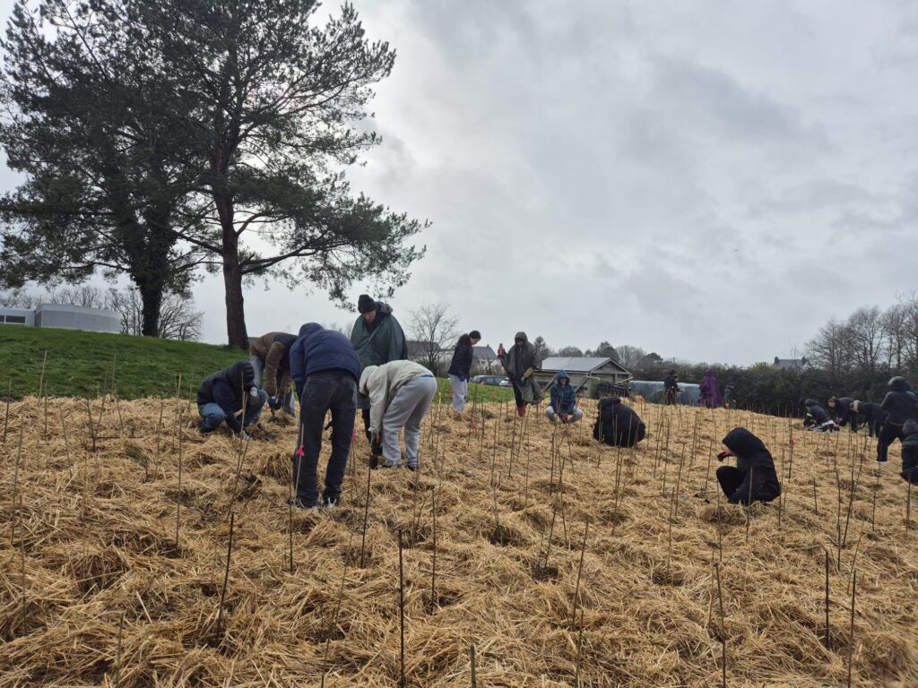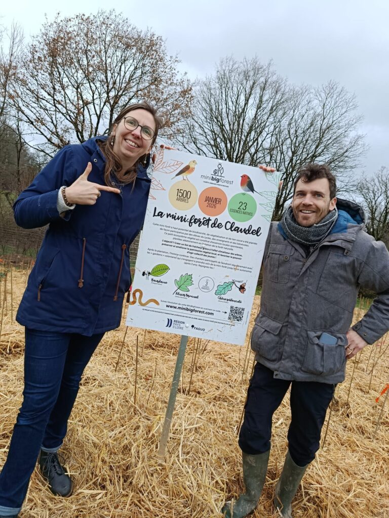 Les 29 et 30 janvier 2026, 200 élèves, professeurs et bénévoles MiniBigForest se sont rassemblés pour planter ensemble une mini-forêt de 1500 arbres sur 500 m2 au sein du lycée Camille Claudel à Blain. La mini-forêt a été plantée selon la méthode Miyawaki, qui s’inspire des mécanismes de la forêt naturelle. Les mini-forêts sont plantées de façon dense et les jeunes plants sélectionnés sont tous issus d’essences locales spontanées.